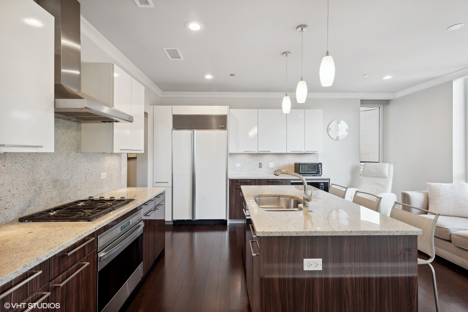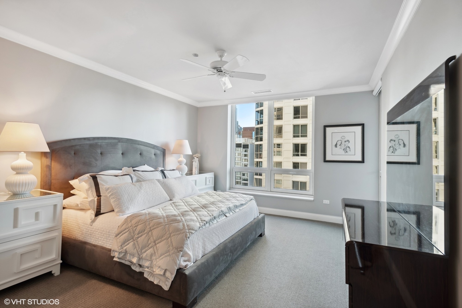 Fabulous value for this beautiful and spacious 3 bedroom/3.1 bath residence located in the heart of the Gold Coast, and in the full-amenity building designed by Lucien Lagrange. Enjoy city views from this SW corner sunlit unit with floor-to-ceiling windows, 9' ceilings, hardwood floor, generously-sized bedrooms, each with their own designated bathroom and custom closets. There are two large private balconies, one equipped with a gas line for easy grilling. The chef's kitchen features SubZero & Wolf appliances, natural stone countertops and backsplash, breakfast bar, pantry and opens to a family room. The primary bedroom has a large walk-in closet, marble bathroom with double sinks, separate shower and soaking tub. Wonderful amenities include 24-hour doorman, outdoor rooftop swimming pool, sundeck and gardens, state of the art fitness center, and party room. This building has a 4-pipe system allowing the selection of heating or cooling year-round. Fantastic location just steps from Michigan Ave, Oak St beach, restaurants, coffee shops, grocery stores, and great shopping. One attached, heated garage space and storage space is included in the price, and second garage space available for $50K.