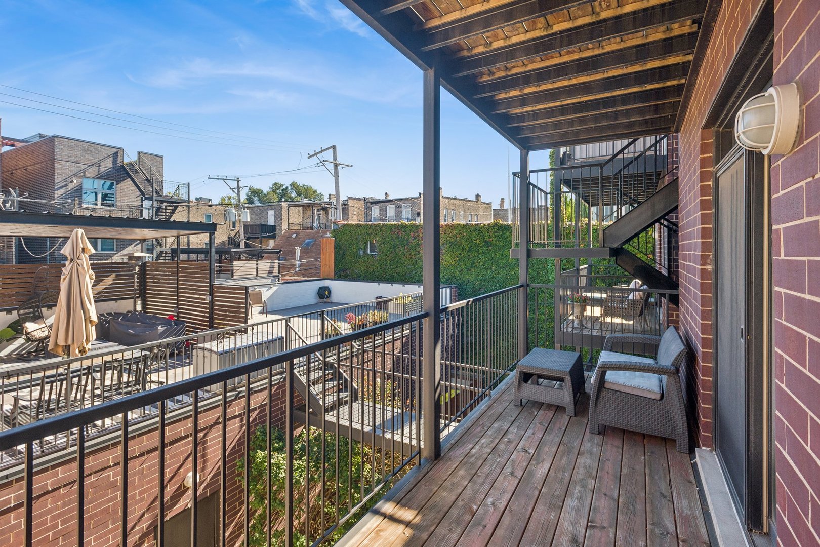 Welcome home to this beautifully designed extra-wide 2 bed, 2 bath condo in the heart of Wicker Park/Ukrainian Village. Offering an expansive open-concept layout, two private outdoor spaces, hardwood floors throughout, and spacious bedrooms, this home blends comfort and style for everyday living and entertaining! The chef's kitchen features Viking appliances, quartz countertops, plenty of cabinet space, and a peninsula perfect for casual dining. The gracious living area features a cozy gas fireplace, built-in shelving, and large sliding doors that open to a front balcony with peaceful treetop views and a gas line for easy grilling. The oversized primary suite boasts elegant tray ceilings, a custom walk-in closet, and a spa-like ensuite bath with dual vanity, heated floors, and a steam shower. A generously sized 2nd bedroom, another full bathroom, and laundry complete this fantastic unit. An on-site garage parking space and additional storage are included. This location can't be beat -- the home sits on a quiet, tree-lined street just steps from transportation and the vibrant dining, shopping, and nightlife along Division and Chicago Ave!
