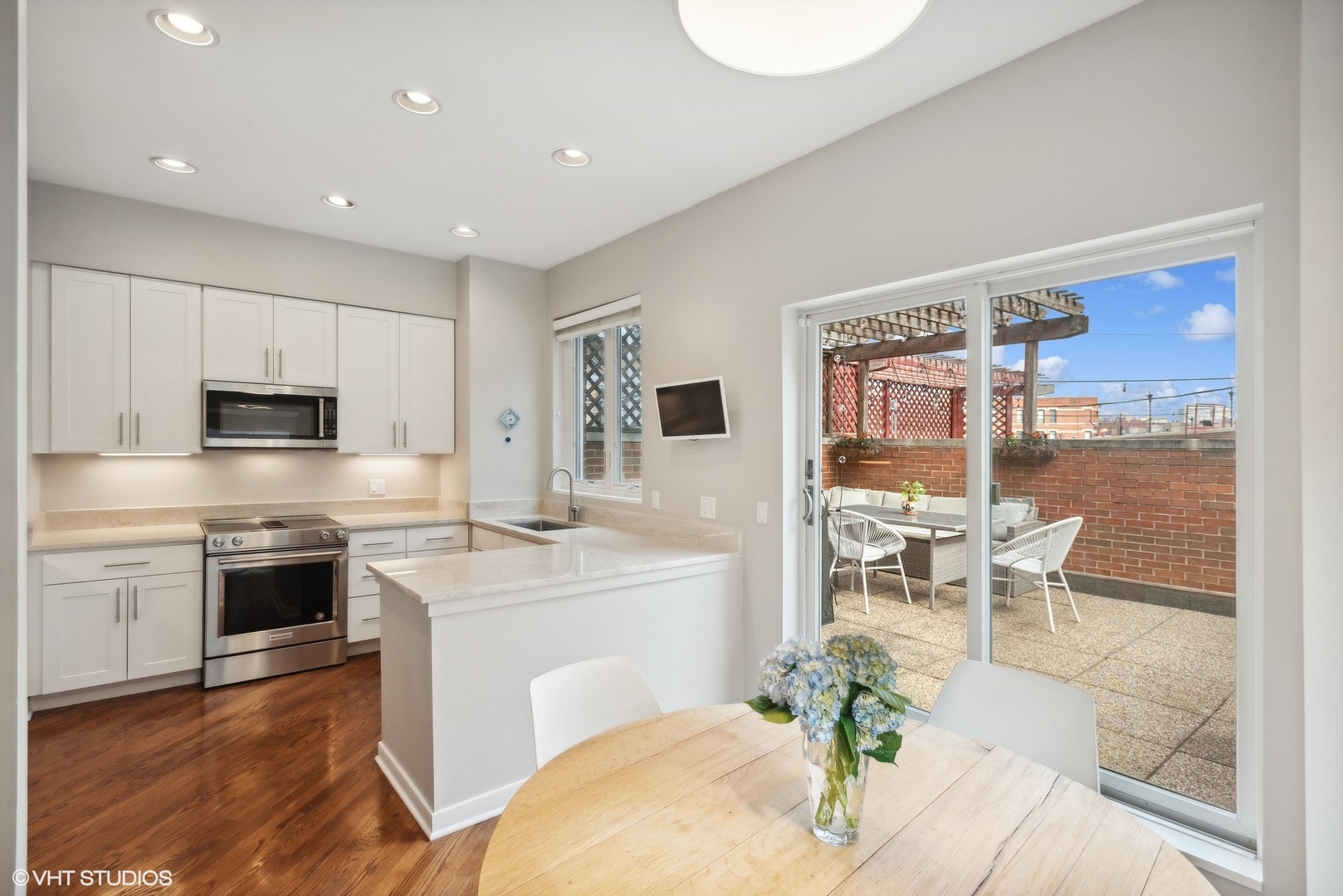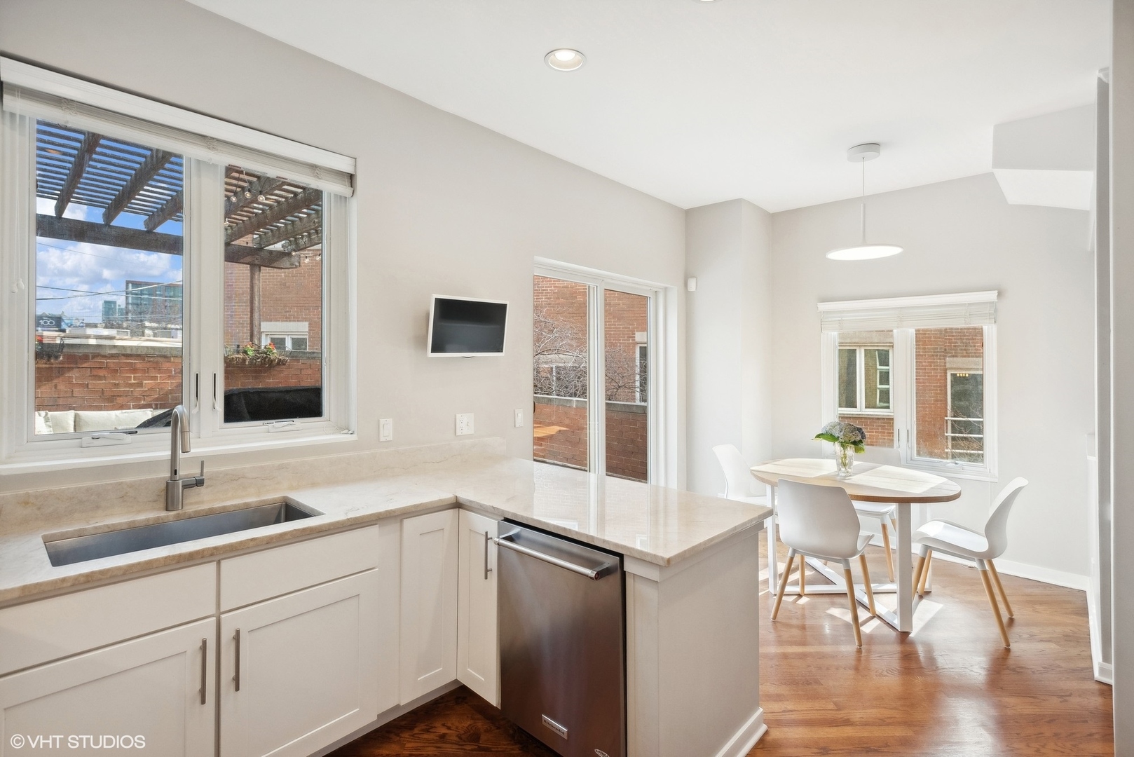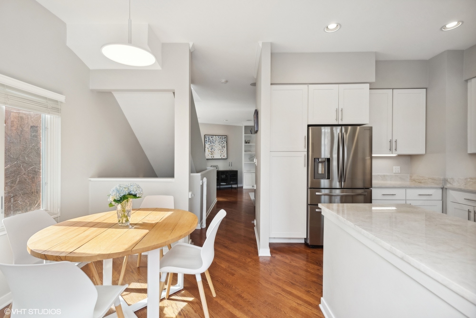 Super bright and beautifully updated Lincoln Park townhome with a private, secured entrance in sought after Jonquil Lane! This quiet interior 3 bedroom, 3 bath home is highly upgraded throughout and features an extra wide floor plan with a ton of natural light with 3 sides of windows and a large skylight. The recently renovated kitchen has 42" white cabinetry, quartz countertops, all stainless steel appliances, and a breakfast area which opens up to the large patio perfect for entertaining and grilling! The large living room has flex space for an additional dining area or play space and includes a beautiful marble tiled fireplace flanked by shelving for display. The second floor features two bedrooms including the serene primary suite with a fully renovated spa-like primary bathroom with a new double vanity and an oversized shower, and a large walk-in organized closet. The spacious 2nd bedroom with a walk-in closet, an additional fully updated bathroom, and a linen closet complete this level. The main floor has a large entry foyer, a coat closet, and the converted half bath to a full bathroom makes the 3rd bedroom a perfect guest room or office. The updated laundry room with additional storage, and attached garage completes this lovely home. In an incredible Lincoln Park location -- directly across from Jonquil Park, a quick walk to transportation (brown/red/purple lines), shopping, and dining!