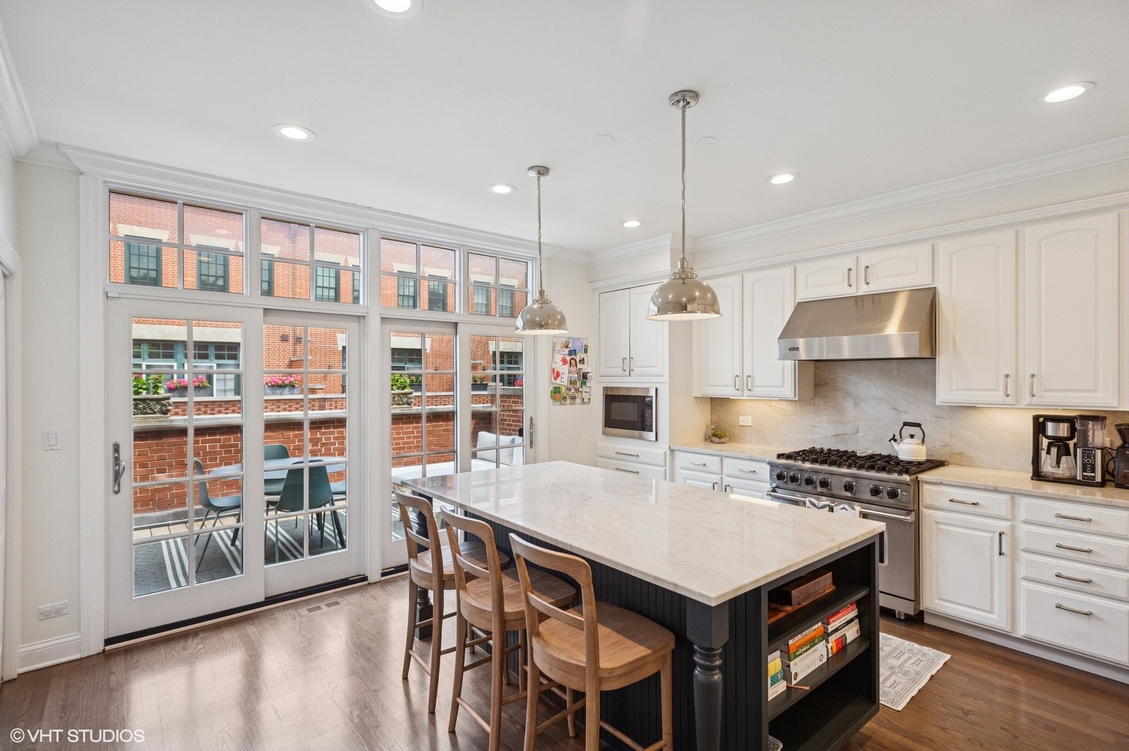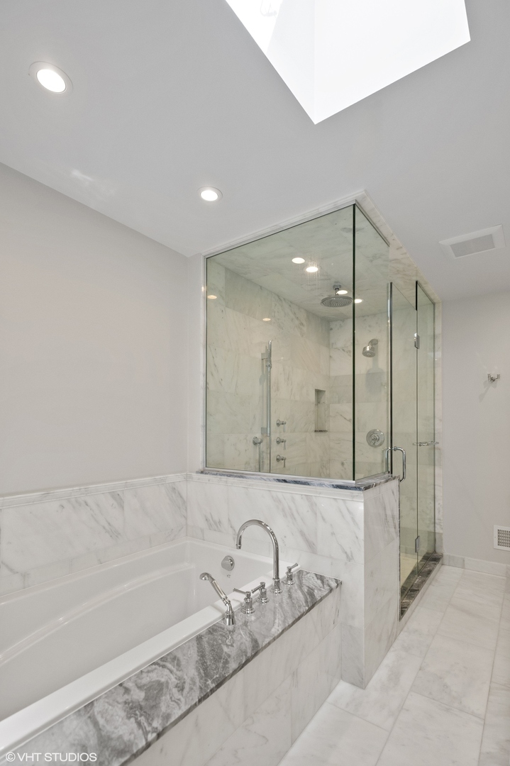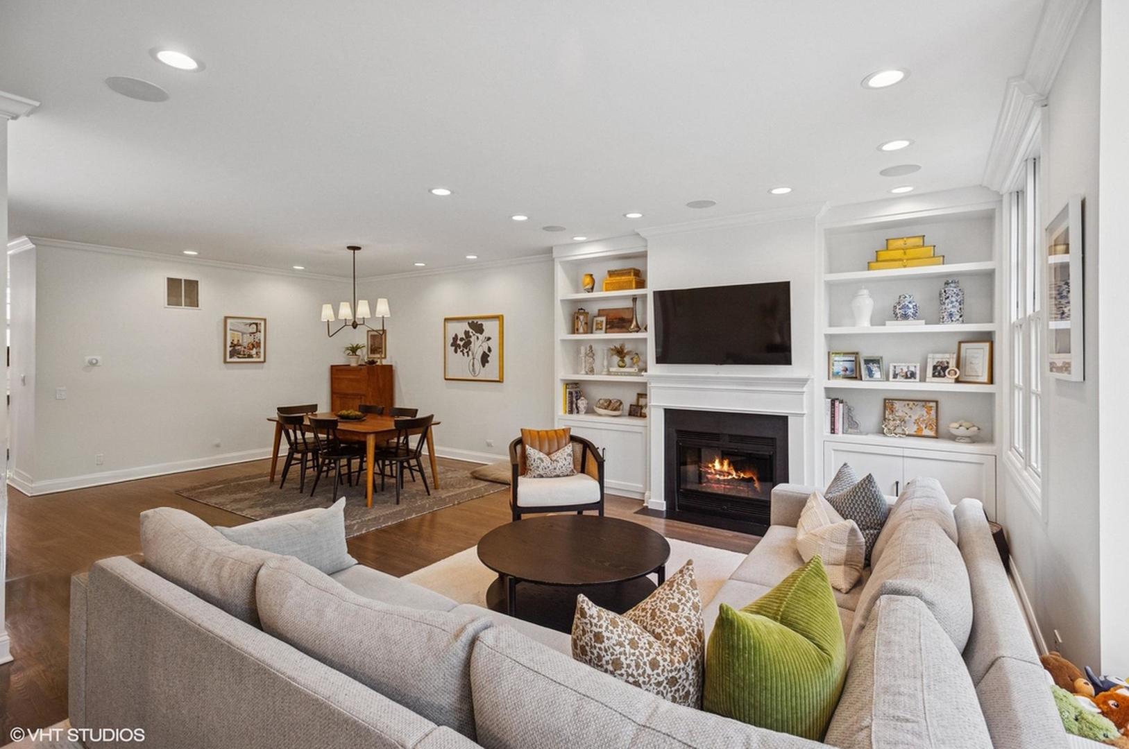 Stunning Lincoln Park townhome in the highly sought after Embassy Club! This beautifully updated 3 bed (upstairs) + downstairs 4th bed/family room home is located on an interior lane in the serene, tree-lined Embassy Club townhome community - providing the perfect blend of privacy, community, and modern comfort. Features of this super bright and spacious floor plan include a true foyer entry, a main level family room/den/guest room with a full bathroom, an extra-wide living/dining room, and three bedrooms all on the second level. This home has been thoughtfully updated throughout - enjoy newer windows that fill every room with natural light, stylishly renovated bathrooms, recently refinished hardwood floors, and new carpet. The sun-drenched living area boasts new custom built-in shelving, a cozy fireplace, large windows with tree-top views, and flows seamlessly into the dining area. The updated chef's kitchen is an entertainer's dream with white cabinetry, a large center island, professional-grade stainless steel appliances, a separate pantry closet, and direct access to a private terrace-perfect for grilling and entertaining! A half bathroom completes the 2nd level. Upstairs features three generously sized bedrooms, including a large primary suite with an updated marble spa-like bathroom with a double vanity, soaking tub, and separate shower with rainshower and body sprays. Additional highlights include a super convenient attached 2-car garage with new epoxy flooring and a rare bonus storage room also upgraded with epoxy floors. Fee-simple ownership with low assessments! Just moments from top-rated schools, one block to Wrightwood Park, and walking distance to shopping, dining, and all that Lincoln Park has to offer! [HOA: $235/month & 2023 Taxes: $18,145.17 (no exemptions)]