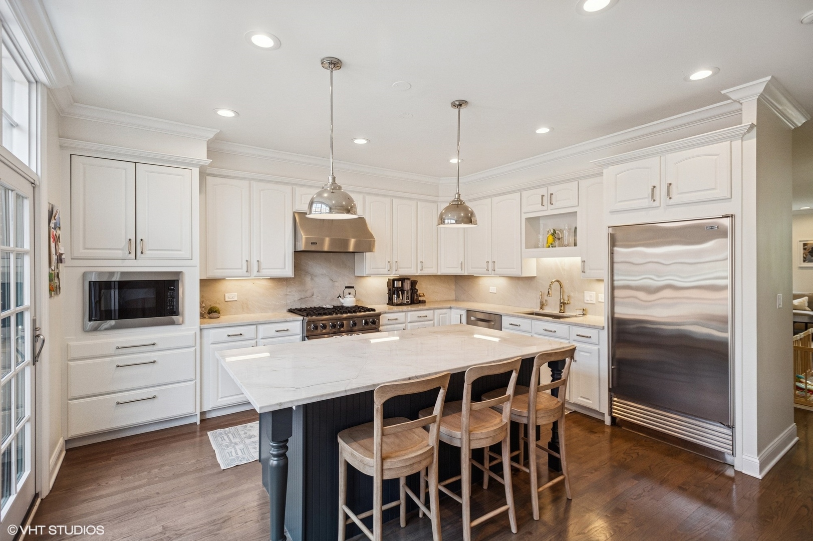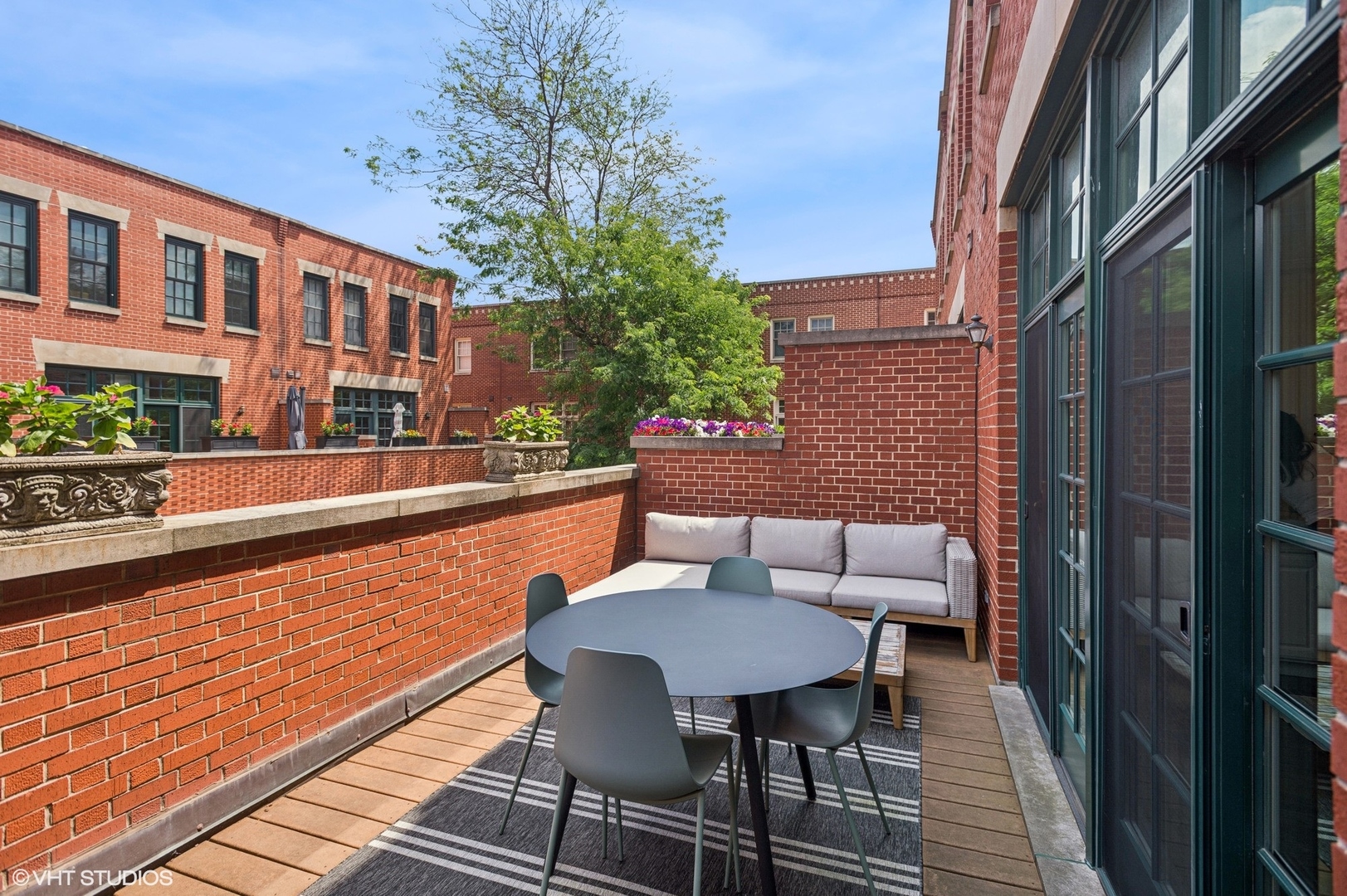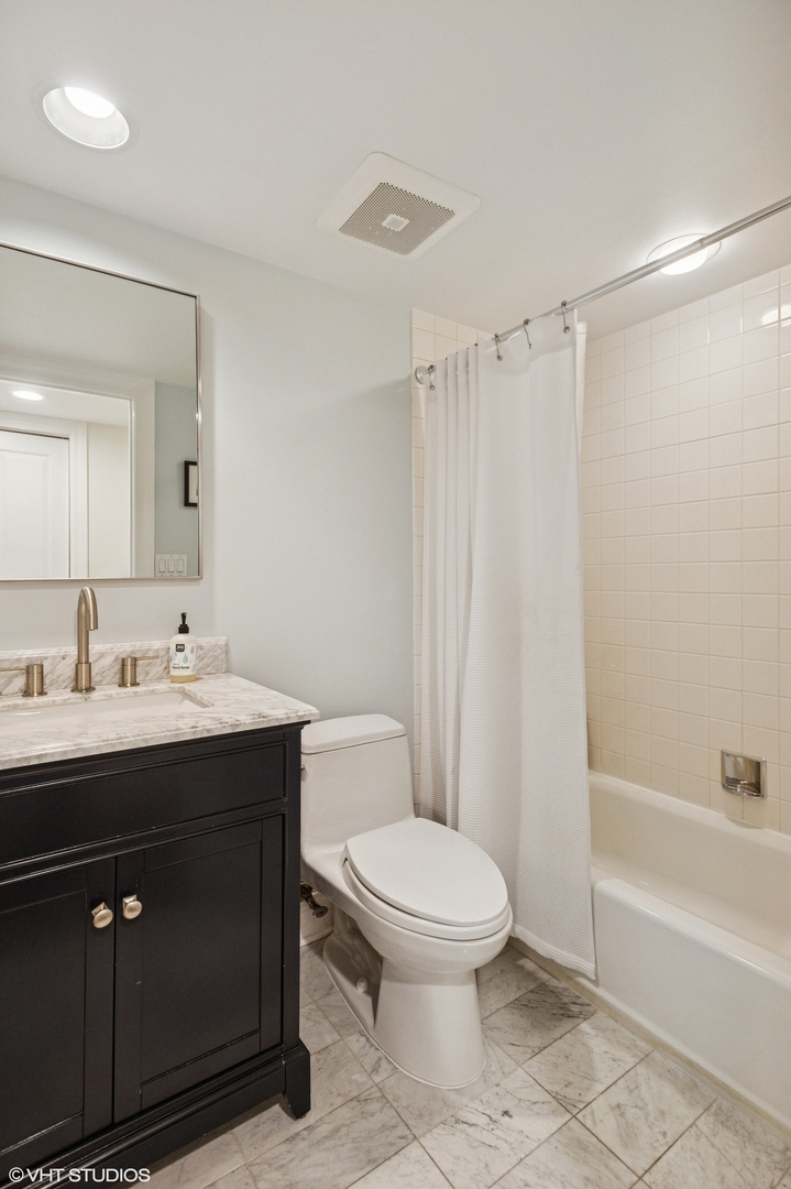 Stunning Lincoln Park townhome in the highly sought after Embassy Club! This beautifully updated 3 bed (upstairs) + downstairs 4th bed/family room home is located on an interior lane in the serene, tree-lined Embassy Club townhome community - providing the perfect blend of privacy, community, and modern comfort. Features of this super bright and spacious floor plan include a true foyer entry, a main level family room/den/guest room with a full bathroom, an extra-wide living/dining room, and three bedrooms all on the second level. This home has been thoughtfully updated throughout - enjoy newer windows that fill every room with natural light, stylishly renovated bathrooms, recently refinished hardwood floors, and new carpet. The sun-drenched living area boasts new custom built-in shelving, a cozy fireplace, large windows with tree-top views, and flows seamlessly into the dining area. The updated chef's kitchen is an entertainer's dream with white cabinetry, a large center island, professional-grade stainless steel appliances, a separate pantry closet, and direct access to a private terrace-perfect for grilling and entertaining! A half bathroom completes the 2nd level. Upstairs features three generously sized bedrooms, including a large primary suite with an updated marble spa-like bathroom with a double vanity, soaking tub, and separate shower with rainshower and body sprays. Additional highlights include a super convenient attached 2-car garage with new epoxy flooring and a rare bonus storage room also upgraded with epoxy floors. Fee-simple ownership with low assessments! Just moments from top-rated schools, one block to Wrightwood Park, and walking distance to shopping, dining, and all that Lincoln Park has to offer! [HOA: $235/month & 2023 Taxes: $18,145.17 (no exemptions)]